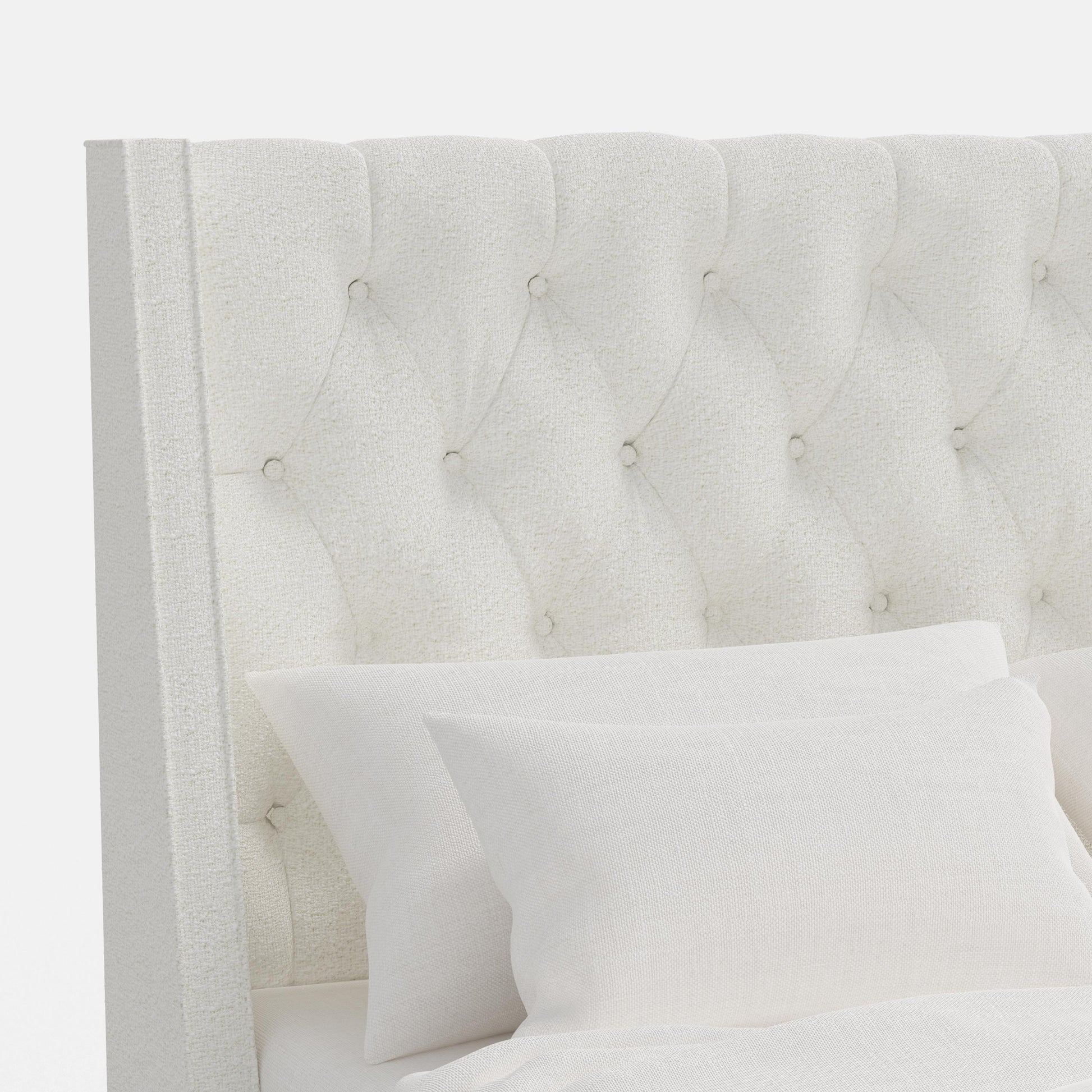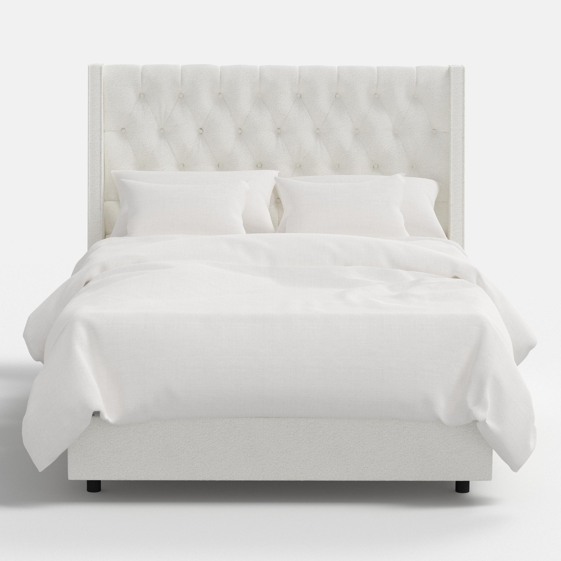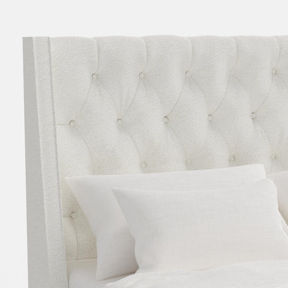 The Wellington Tufted Bed exudes timeless sophistication with its high, wingback headboard and deep diamond tufting. Its gracefully angled sides create an enveloping feel, while the generously padded frame adds comfort and elegance. Perfect for both classic and transitional interiors, this bed transforms your bedroom into a refined retreat.