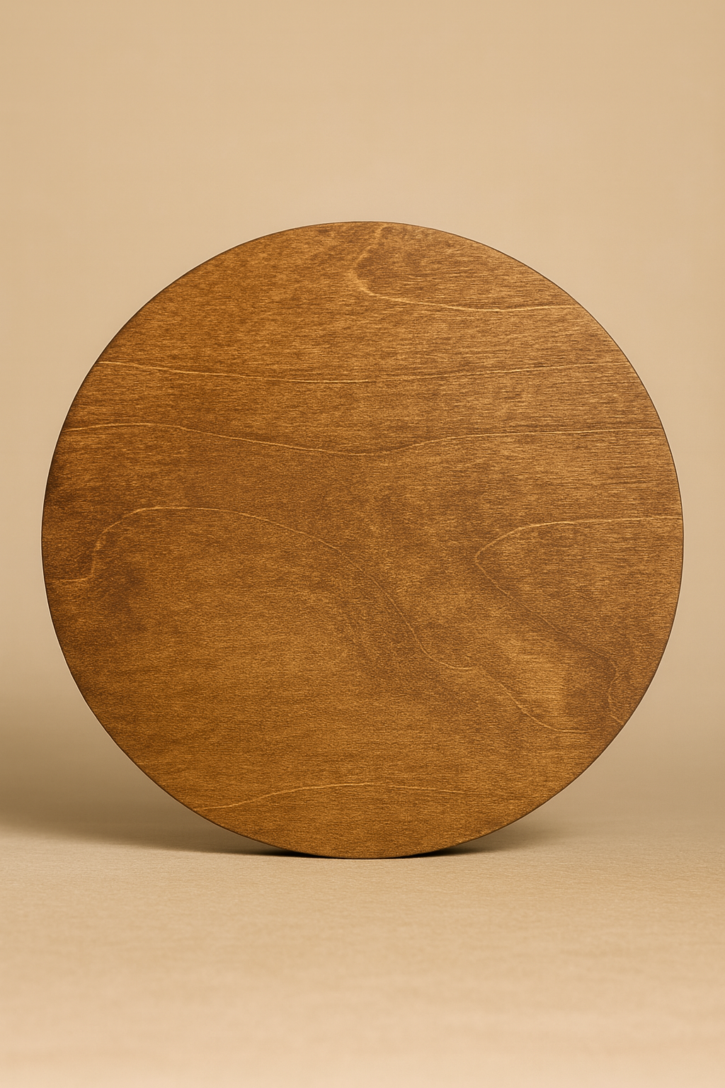 - Back of the wood circle is stained with a neutral Early American wood stain
